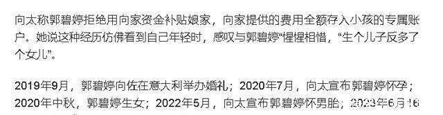 更值得注意的是,向太说这些话的时候,正好是“郭碧婷和向佐婚变”的传闻闹得最凶的时候。 之前有消息说,他们一年多没怎么联系了,郭碧婷偶尔回香港也很低调,让人怀疑她的婚姻状况。 在这种时候,向太通过夸郭碧婷、强调家庭和谐,难免让人觉得是为了平息婚变传闻,维护向家的形象,同时用“规矩”进一步约束郭碧婷。